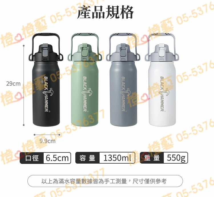 > BLACK HAMMER 316不鏽鋼雙飲口保溫瓶1350ml/隨身杯/飲料杯/水壺/環保杯