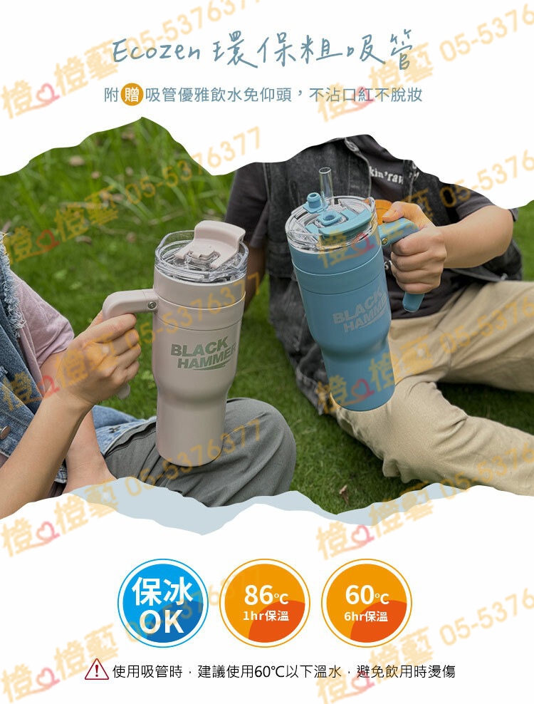> BLACK HAMMER 316不鏽鋼保溫保冰手提冰壩杯1280ml(附吸管)/飲料杯/環保杯