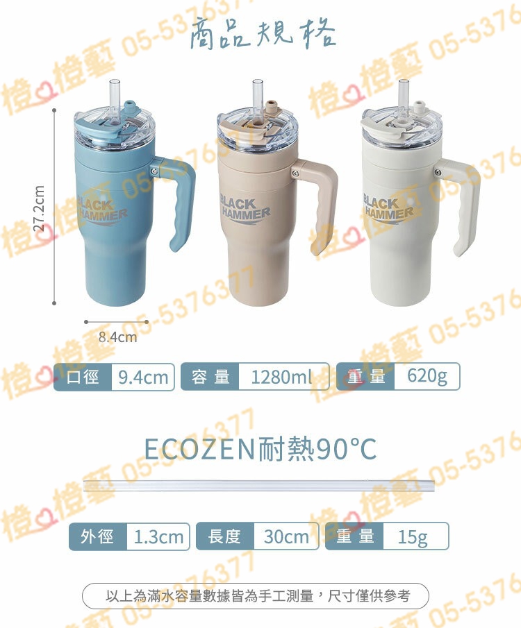 BLACK HAMMER 316不鏽鋼保溫保冰手提冰壩杯1280ml(附吸管)/飲料杯/環保杯