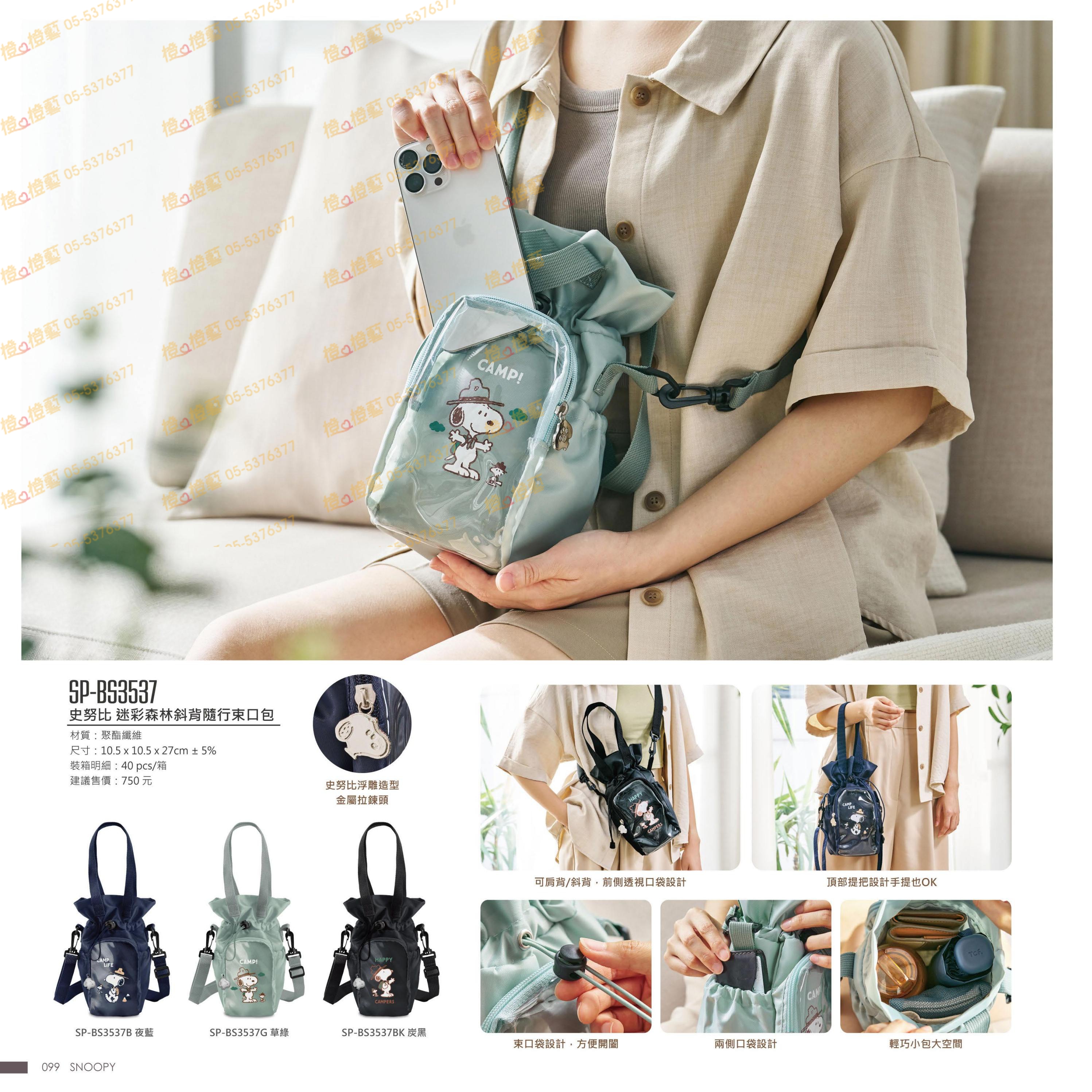 > SNOOPY 史努比-迷彩森林斜背隨行束口袋/隨身包