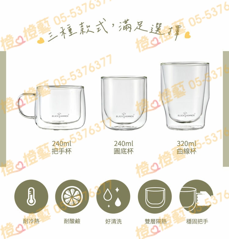 > BLACK HAMMER 圓底雙層耐熱玻璃杯240ml