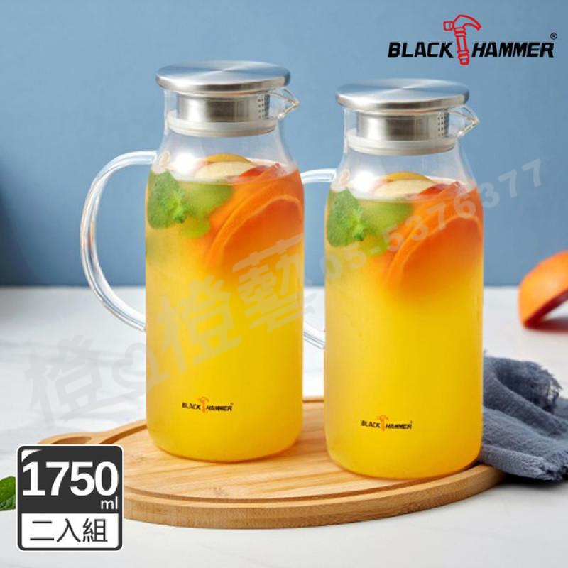 > BLACK HAMMER 晶透耐熱玻璃水瓶1750ml(兩入組)