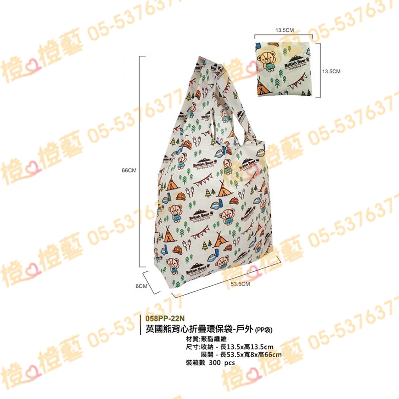 > 英國熊背心摺疊環保袋-戶外PP袋