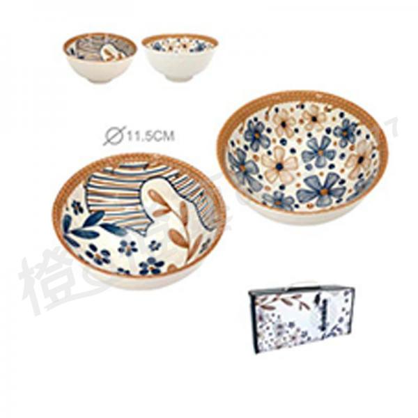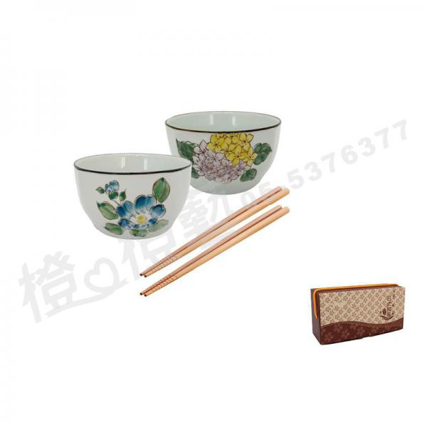松村窯手繪4.5吋方口四季碗2碗2筷 混色出貨 來電洽詢