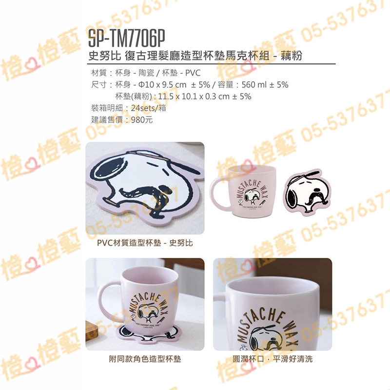 > SNOOPY 史努比-復古理髮廳造型杯墊馬克杯組(藕粉)