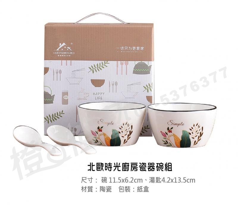 北歐小清心插畫-瓷器碗組(含湯匙)