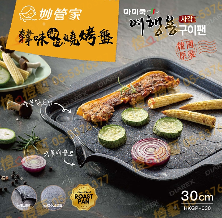 > 妙管家-韓味油切燒烤盤/一體成形/迅速導熱/4重特殊塗層/滴油口設計/含固定座/禮品贈品/戶外野炊