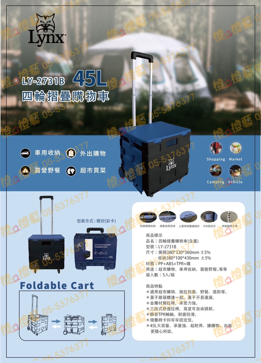 > LYNX四輪摺疊購物車/拉桿購物車/摺疊購物車/收納購物車/收納箱/收納車