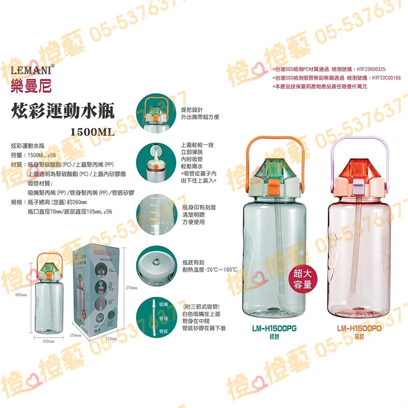 > 樂曼尼-炫彩運動水瓶/隨身水壺/耐熱水壺
