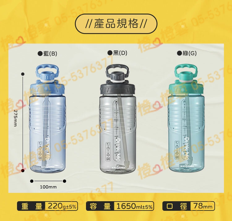 > BLACK HAMMER Drink Me大容量冷水運動瓶1650ml(附吸管)/環保水壺