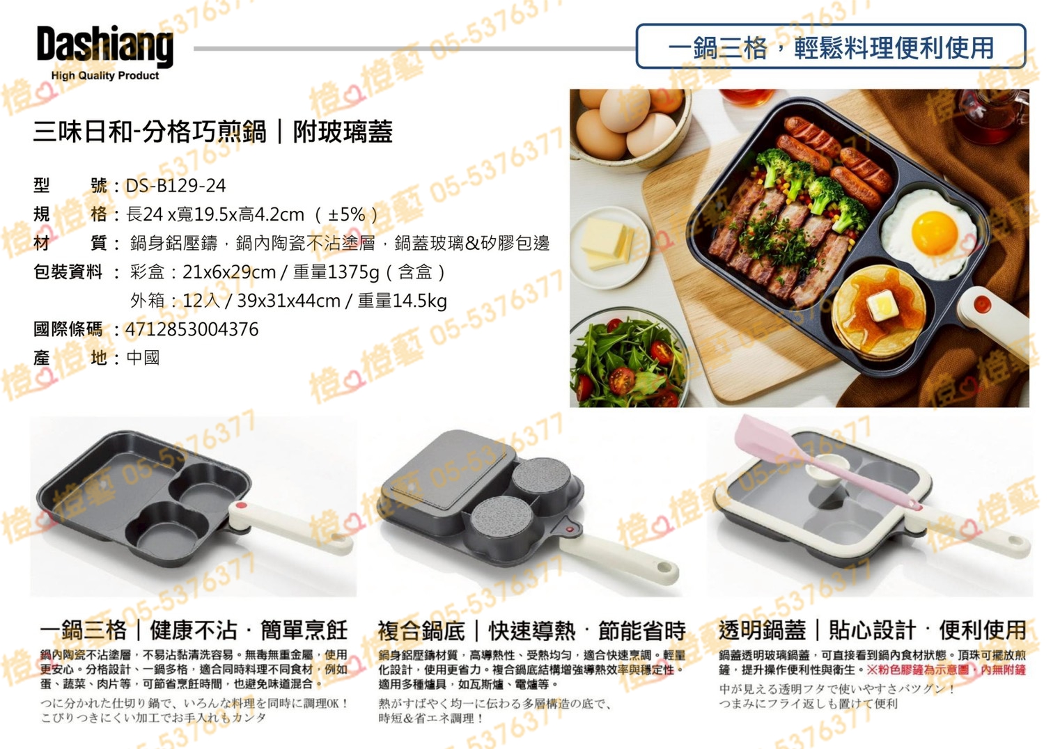 > Dashiang 三味日和-分格巧煎鍋(附玻璃蓋)/不沾鍋/煎鍋