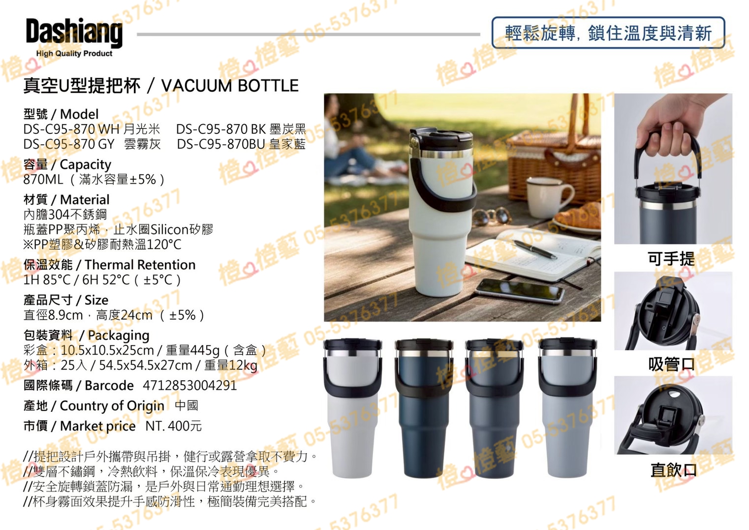 Dashiang 真空U型提把杯/環保杯/保溫杯/隨行杯