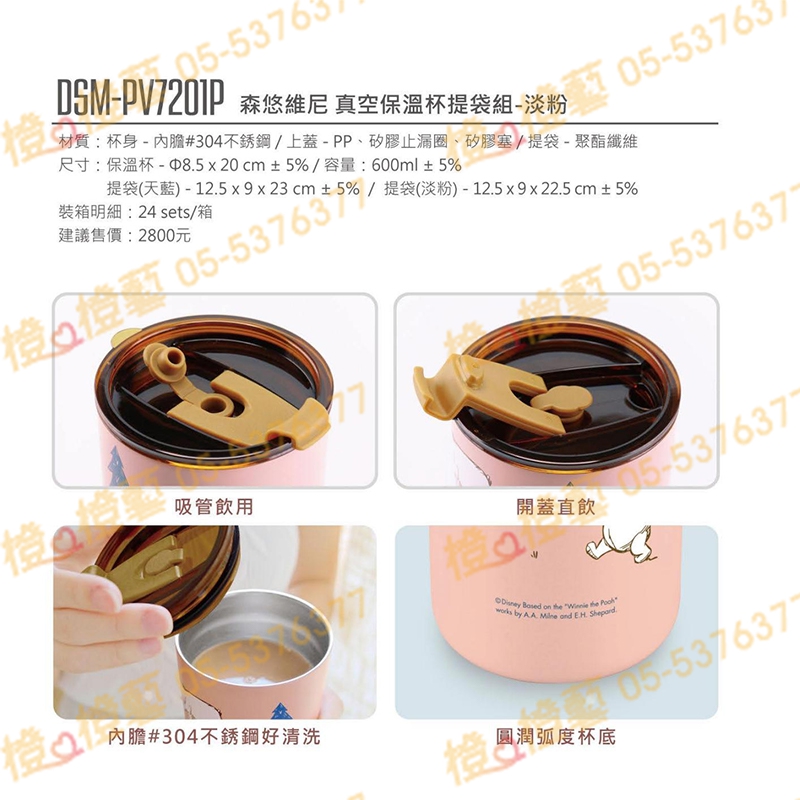 > 迪士尼-森悠維尼 真空保溫杯提袋組(淡粉)/隨行環保杯