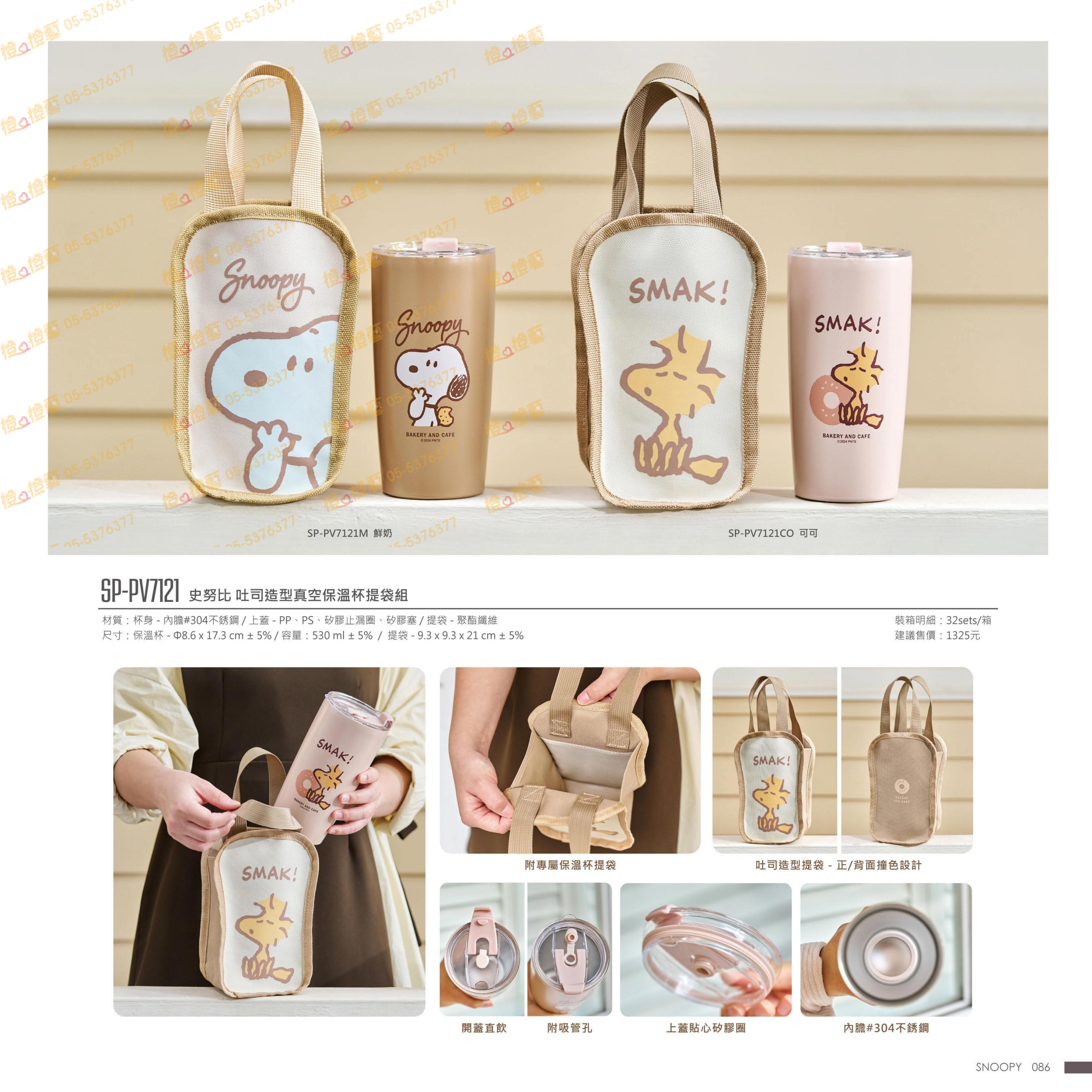 SNOOPY 史努比-吐司造型真空保溫杯提袋組