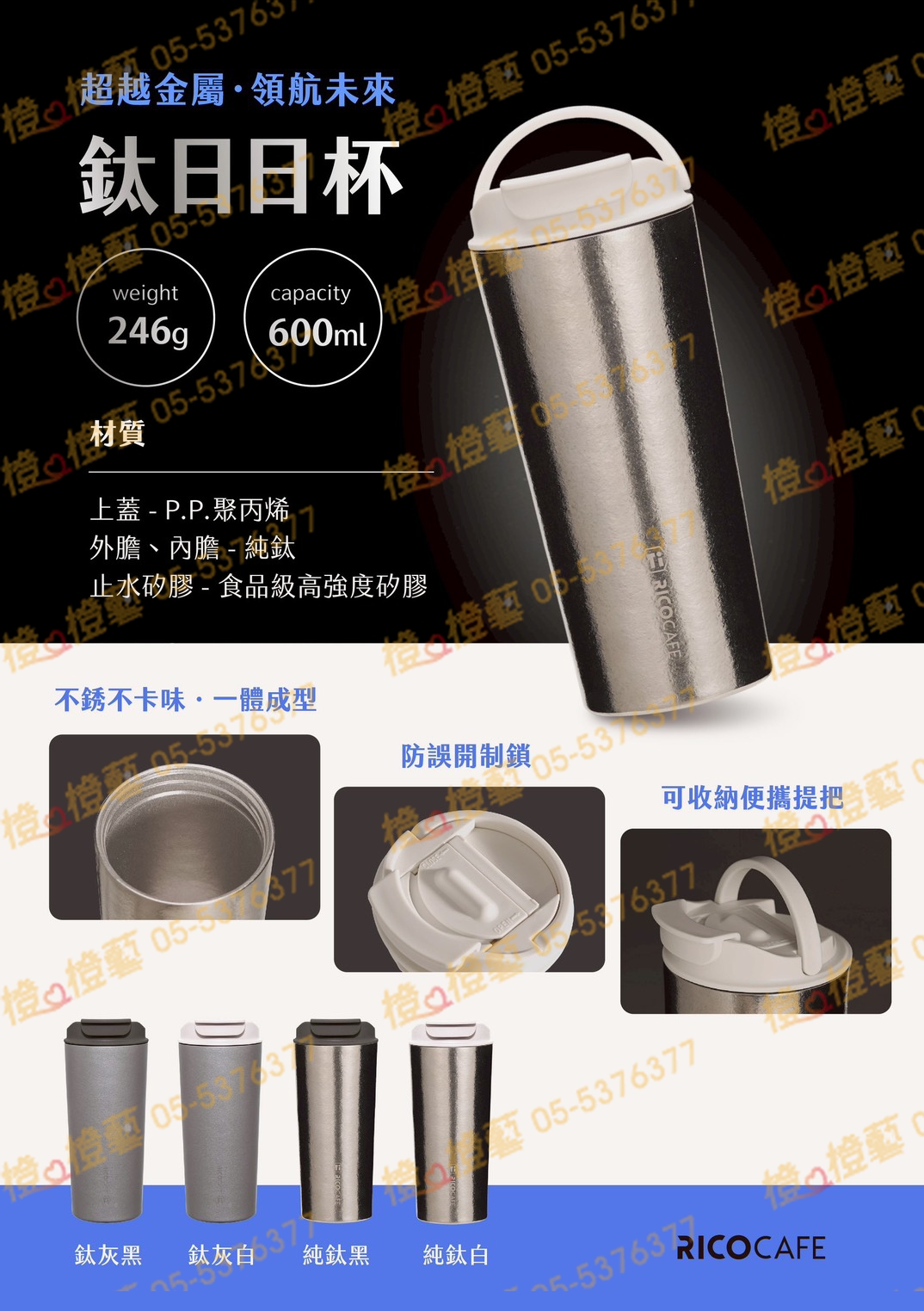 > RICO CAFE鈦日日杯 600ml 提把純鈦保溫杯/環保杯/隨身杯