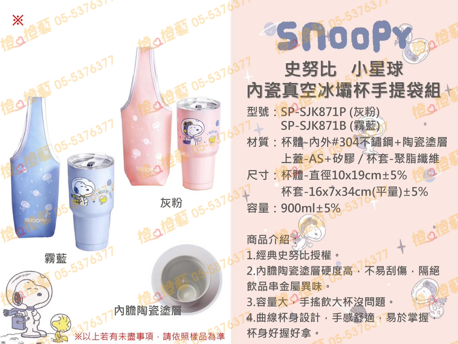 > SNOOPY 史努比-內瓷真空冰壩杯手提袋組/保溫環保杯
