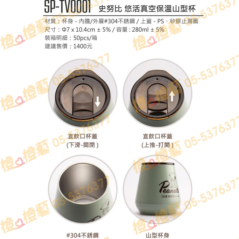 > SNOOPY 史努比-悠活真空保溫山型杯/隨行杯