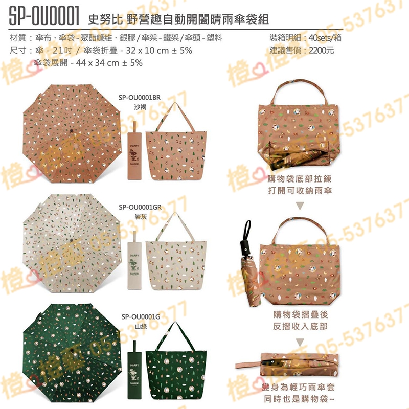 > SNOOPY 史努比-野營趣自動開合晴雨傘袋組/摺疊傘